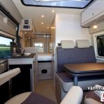 Pour le millésime 2021, Bürstner vise clairement l’univers premium avec la gamme Eliseo. En complément de la série Campeo inaugurée l’an passé, la famille Eliseo remplace la gamme City Car. Sur le C600 de 5.99 mètres et le C641 de 6.36 mètres, cela se traduit par l’installation d’un grand frigo de 135 litres, des w.c. revus et un rangement transversal dans l’espace nuit. Dans le coin dinette, on gagne en hauteur grâce à la cabine ouverte et en luminosité avec l’installation du Skyroof optionnel (non disponible si l’on ajoute le toit relevable). Dans la série Campéo, le C600 est rejoint de son côté par les 540 et 640 jusqu’alors réservés uniquement au seul marché allemand. Durant les mois qui viennent, l’actualité Bürstner s’annonce particulièrement intense puisque l’aménageur a indiqué travailler sur un fourgon à transmission 4×4 Dangel et un van à toit relevable.