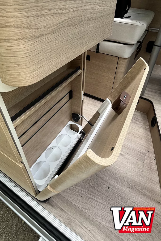 Les batteries cellule migrent désormais sous les sièges cabine, libérant de l’espace dans les coffres. Un nouvel interrupteur tactile multifonction et un éclairage extérieur pilotable depuis la soute apparaissent. Sur la finition Saphir, deux batteries AGM et un panneau solaire sont montés de série.