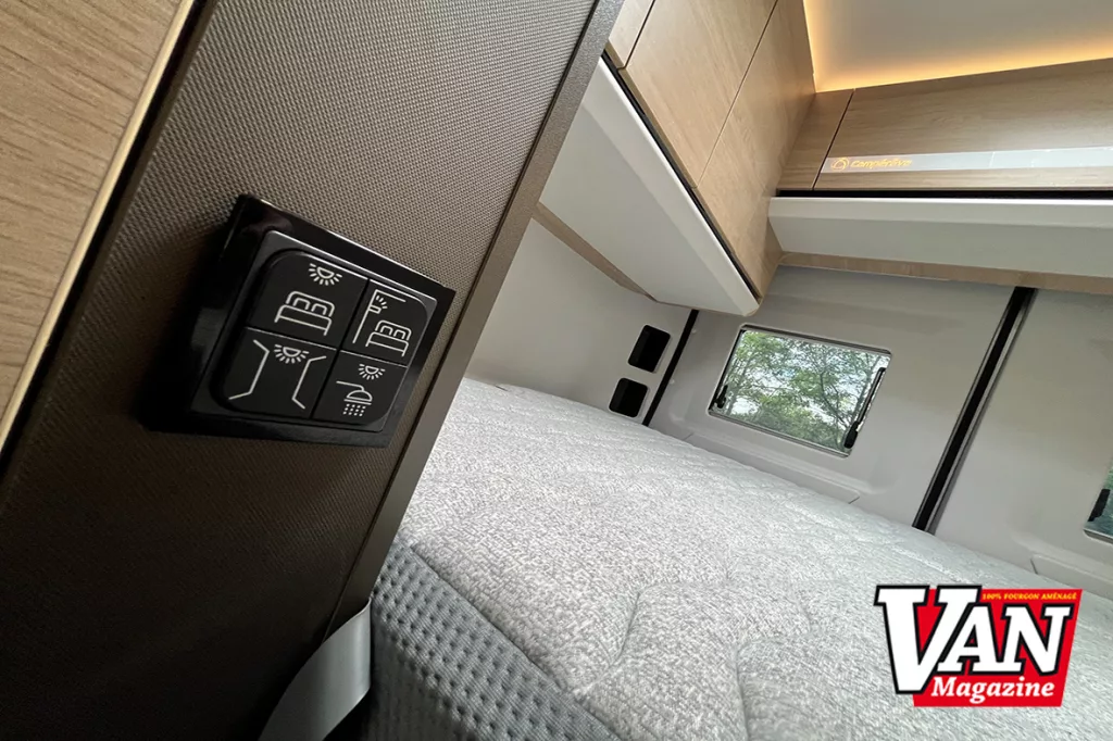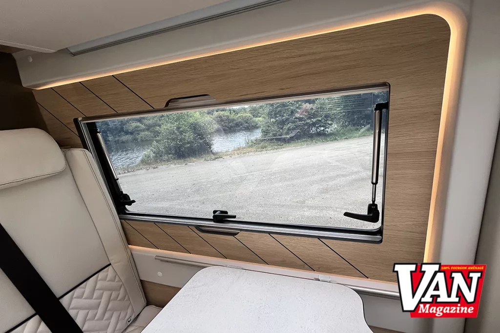 L’équipement général évolue lui aussi : lanterneau extra-large (900 x 600 mm) sur Magellan et Saphir, lit de pavillon redessiné avec éclairage LED, nouvelles baies noires en polyuréthane avec vitrage surteinté, et tiroir coulissant à l’arrière pour deux bouteilles de gaz.