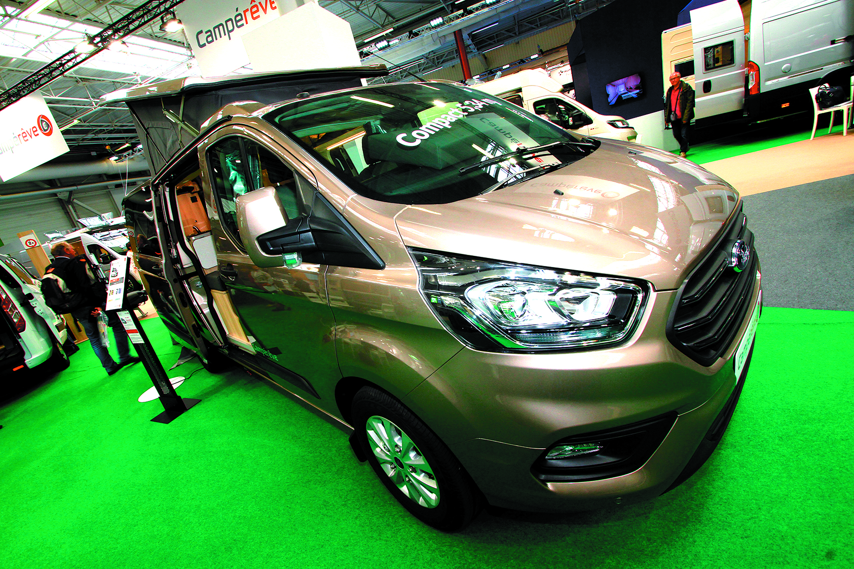 Si les vans sports et loisirs ont le vent en poupe, Campérêve propose une version un peu plus peaufinée avec le Cap Land. Inutile de se laver à l’extérieur, la partie arrière intègre en un seul et même espace une salle de bain dotée d’une douche, d’un WC et même d’un lavabo. Une vraie prouesse. Le salon, lui, est incroyablement spacieux et s’offre le luxe de deux banquettes face à face (on ne pivote pas les sièges de la cabine) en plus d’un strapontin disposé à côté de la porte. La cuisine, elle, intègre tout le confort avec une plaque de cuisson à 2 feux, un évier en inox et un frigo de 51 l à compression. Pour la nuit, 2 adultes peuvent dormir dans le lit du toit relevable et 2 en transformant la dinette.