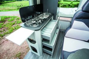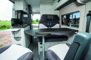 Avec le Kyros 2, CI propose un Van fonctionnel concentré sur l’essentiel pour 2 personnes (une 3e peut tout de même être logée en transformant la dinette). Idéal pour ceux qui recherchent un modèle à petit prix sans pour autant transiger sur les principaux éléments de confort. Les rangements omniprésents permettent de s’organiser au mieux tandis que les boiseries aux tons neutres promettent un van intemporel. La circulation dans le fourgon est aisée et le frigo en hauteur (80 litres) est appréciable au quotidien. Bref, le Kyros 2 va à l’essentiel, mais ne cherche pas à vous flouer.