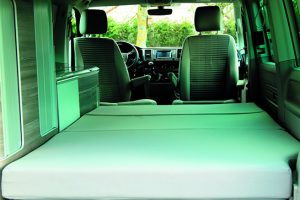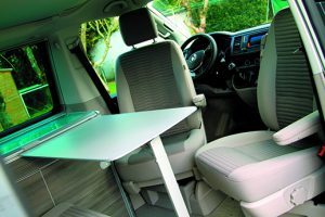 Le Volkswagen California est une star qui fait le lien direct avec le Combi d’antan. Si le plan historique (cuisine face à la porte) semble éternel (comme le toit relevable), on distingue aujourd’hui trois familles de California. En bas de l’échelle, on retrouve le Beach (dès 45 370 €) . Sans cuisine, il propose tout de même la table (qui se fixe à l’extérieur) et le couchage. Pour bénéficier de la cuisine et du petit salon, il faudra alors se tourner vers le California Coast (à partir de 60 580 €). En haut de la pyramide, le California Ocean (à partir de 67 180 €) joue la carte du premium avec des meubles de rangement façon bois sombre avec douchette extérieure.