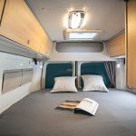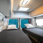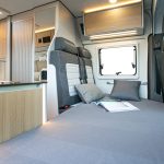 Pour ceux qui ont besoin d’espace, le Master Van Duo offre un cocon tout confort aux jeunes familles et aux couples grâce à ses 6,22 mètres. À l’arrière, il dispose de lits jumeaux (transformables en grand lit), et comme le Van XS, une cuisine design et une salle de bains modulable TB Concept. On apprécie le salon avant panoramique, le niveau d’équipements et le prix incroyablement serré.