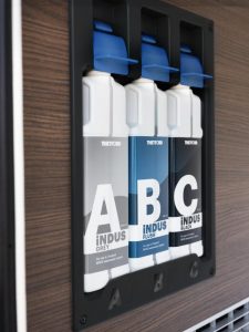 Autre argument du système iNDUS, l’autonomie d’environ 7 jours (contre 4 à 5 arrêts par semaine pour l’ensemble des opérations de vidange en moyenne). «En comparaison, nous utilisons 3 à 10 litres d’eau par chasse à la maison. En réutilisant l’eau grise pour la chasse d’eau des toilettes, on économise en moyenne 112 litres d’eau douce par période de 4 semaines et par conséquent la même quantité d’eaux usées ! », indique Norbert Van Noesel, directeur du Marketing chez Thetford.