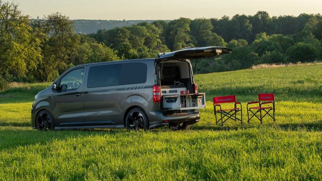 En l’absence de toit relevable, Irmscher a opté pour une malle amovible complète à glisser dans le coffre. Cette dernière comprend tout le nécessaire pour partir à l’aventure, avec notamment un évier d’appoint, une glacière 12V, un réchaud à gaz qui comprend deux feux, et quelques tiroirs de rangement. Sur le dessus de la malle, le préparateur a glissé quatre petits matelas en mousse pour composer un couchage double. Grâce à cette malle, le Zafira se transforme en un petit van.