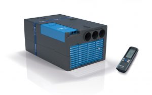En plus des chauffages standards, Truma propose un climatiseur de coffre. Baptisé Saphir Comfort RC, il est doté d’une pompe à chaleur et un circuit de froid réversible. Le climatiseur dispose également d’une fonction nuit, qui permet de réduite la vitesse du ventilateur afin de réduire le bruit.