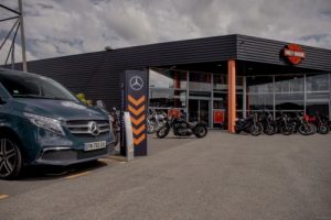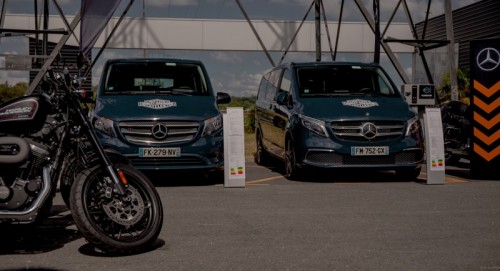 À l’occasion de sa 13e tournée annuelle en France, Harley Davidson s’est associé à Mercedes-Benz Vans pour mettre sur pied les week-ends organisés jusqu’à fin octobre à travers les concessions de motos. Baptisée Freedom Tour, cette nouvelle édition permettra d’exposer une Classe V et un Vito Tourer autour des Sportster, Softail, Touring proposés à l’essai. Les vans allemands seront par ailleurs mis à disposition des organisateurs (le Sprinter a été équipé tout spécialement d’une rampe Dhollandia pour le chargement des motos) et des instructeurs de la célèbre société BMC (fondée en 1998 par les champions du monde d’endurance et victorieux des 24h du Mans William Costes et Adrien Morillas). « Ce partenariat nous permet d’aller à la rencontre d’une clientèle proche de notre univers et des concessionnaires Harley, potentiellement utilisateurs d’utilitaires légers premium », indique Stéphane Renault, directeur marketing Vans de Mercedes-Benz France. Cette association était aussi naturelle pour Loïc De Cambronne, Directeur Général de Harley-Davidson France qui précise : « Nous partageons avec Mercedes-Benz Vans une cible commune. Des hommes, âgés en moyenne de 47 ans, et bien établis sur le plan familial et professionnel. Souvent, ils ont pratiqué la moto de façon continue ou discontinue par le passé. »