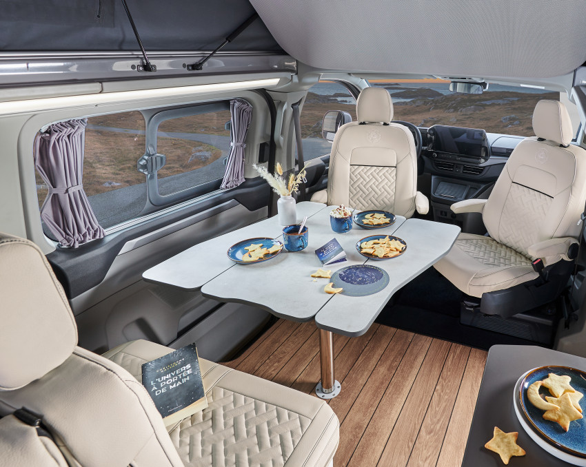 Le Cap Land est un modèle iconique de la marque Campérêve depuis son apparition il y plus de 8 ans. Il profite de la sortie de la nouvelle génération du Ford Transit Custom pour gagner en habitabilité, mais aussi sur le plan pratique, grâce à une ingénieuse banquette électrique.