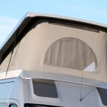 Avec ce Campéo, proposé en une seule implantation pour le moment, Bürstner se donne clairement les moyens de bien figurer sur le marché du fourgon, qui demeure toujours aussi dynamique. Alors que jusqu’à présent, la production de la gamme City Car était confiée aux usines d’autres marques de Erwin Hymer Group, ce Campéo est un produit 100% Bürstner, de la conception à la réalisation. Cela permet de décliner les ambiances et la philosophie du « Bien chez soi » chère à la marque sur une partie de l’offre fourgon. Pour son lancement, seule la version C600 du Campéo est proposée, en complément des offres de la gamme City Car. Fort logiquement, la nouvelle gamme Campéo devrait rapidement, certainement lors du prochain millésime, s’étoffer pour remplacer l’offre actuelle. Avec se Campéo, Bürstner applique une politique tarifaire agressive, avec un fourgon proposé à 40 990 € dans sa version de base. Pour disposer d’un peu plus de confort et d’agrément, il semble indispensable d’ajouter à ce prix celui du « Pack Campéo », facturé 4 709 €, dans lequel est compris par exemple la climatisation de cabine, le régulateur de vitesse, les stores de cabine, le marche pied de 700mm ou encore la moustiquaire de porte latérale. Soit un total de 45 699 € pour un fourgon de 6m, équipé du moteur 120 ch en boîte manuelle. Un second pack, baptisé « Active », y ajoute des jantes en alliage, des baies à encadrement et une ambiance textile intérieure matelassée du plus bel effet, pour un montant de 1 730 €. Selon les premiers retours, plus de 80% des commandes l’ont été avec l’option toit relevable (couchage de 200x135cm), facturée 3 822 € en blanc et 4 729€ couleur carrosserie. Option qui entraîne obligatoirement le passage du châssis 3 300 kg vers la version 3 500 kg, ce qui entraîne un surcoût de 595 €. Pour faire un résumé clair, ce modèle que nous présentons ici, qui intègre les deux packs proposés, le toit relevable peint et la couleur de carrosserie grise, est affiché au prix de 53 378 €. A titre d’information, la même version, mais avec la teinte blanche vous coûtera 1 532 € de moins, soit 51 846€. En termes d’implantation, ce Campéo apporte bien entendu son lot de nouveautés, avec en tête de liste, la découpe de cabine, qui tend à se généraliser aujourd’hui sur le marché. Pas encore de toit vitré au programme, mais on peut penser que cela devrait arriver dans les mois qui viennent.