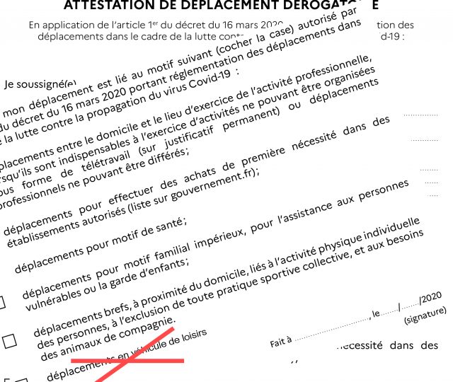 Depuis quelques jours, plusieurs personnes tentent – souvent en toute sincérité et par méconnaissance – d’interpréter le décret du confinement pour la situation des véhicules de loisirs. Beaucoup pensent qu’il est possible de rester confiné sur une aire de services, voire dans un camping, ou que l’on peut encore circuler en fourgon. Sur le web, on voit même quelques (fausses) attestations à destination des camping-cars qui ressemblent à s’y méprendre à celles imposées par le gouvernement. Il n’y a pourtant qu’une seule dérogation valable (l’attestation de déplacement sur l’honneur du décret du 16 mars téléchargeable ici), qu’une seule règle. Les déplacements sont interdits et seules de rares exceptions sont accordées : se rendre au travail (quand le télétravail est impossible), aller faire ses courses, se faire soigner, pour motif familial impérieux. À chaque déplacement, il faut remplir l’attestation précitée que vous serez amenés à présenter aux forces de l’ordre. En d’autres termes, on ne peut donc pas se rendre loin de son domicile en fourgon même si l’on reste stationné uniquement sur des aires de services le temps du confinement. Vous vous exposez à une amende systématique de 135 € pouvant être majorée à 375 €. Si vous étiez en train de voyager pendant l’annonce du confinement, vous devez rentrer à votre domicile. Les campings ont par ailleurs fermé leurs portes et n’acceptent plus les véhicules de loisirs. Beaucoup de Maires ont également pris des dispositions en fermant leurs aires de services le temps du confinement.