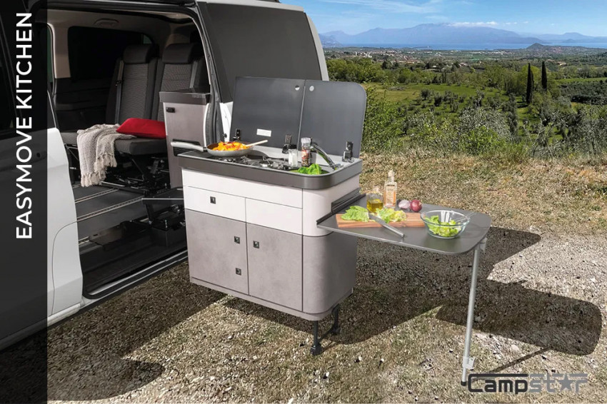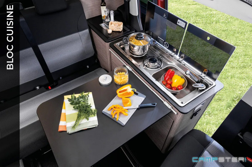 Le Campster est construit sur la base du Citroën Spacetourer et il offre un équipement plus poussé que le Vanster pour la partie voyage. Il propose une banquette 2 places transformable en couchage, un toit relevable avec couchages, un bloc cuisine complet dans l’habitacle, des sièges pivotants et une lunette arrière ouvrante.