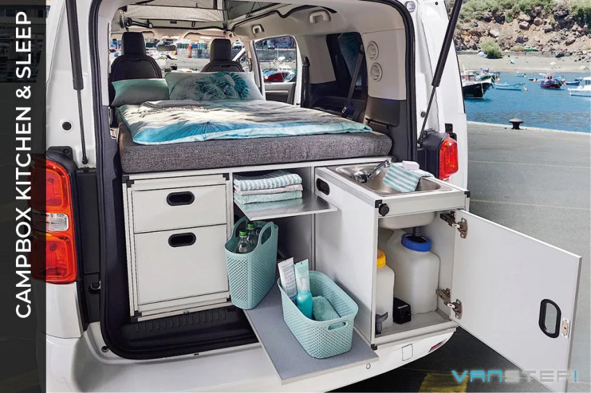 Le Vanster est construit sur une base Citroën Spacetourer ou Peugeot Traveller et il regroupe tout ce que l’on attend d’un van compact, qu’il s’agisse d’un usage quotidien ou pour partir en voyage. Il intègre pour cela une plaque de cuisson à induction rabattable à l’arrière, un toit relevable avec couchage, une « Campbox » qui n’est autre qu’un bloc cuisine pouvant être décliné en deux versions (bloc cuisine seul ou bloc cuisine +- couchage), les sièges avant pivotants et un format compact de 4,95 m.
