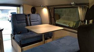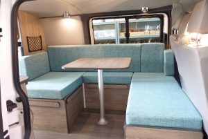 Dans la famille des aménageurs indépendants, SmartCombee propose dans la région bordelaise des solutions ingénieuses et de réalisations complètes en atelier sur la base de trois kits à destination du Trafic et du Transporter. La gamme se compose de trois ensembles, dont le kit convivialité (à partir de 2 470€). Il dispose d’assises et de banquettes pouvant se soulever, d’un meuble colonne arrière capable d’accueillir un réfrigérateur jusqu’à 38cm de large.