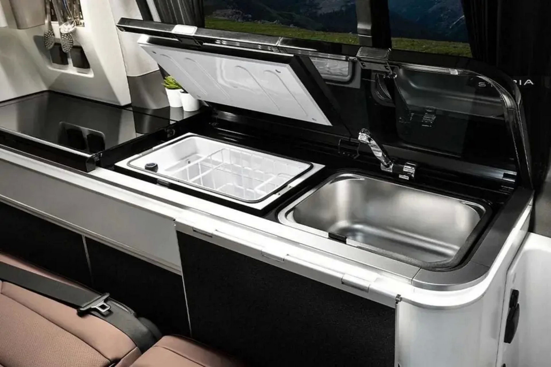 On ne s’attendait pas vraiment à ce que Hyundai se lance sur le segment des vans aménagés. Pourtant, le constructeur coréen a osé, et présente un modèle qui ne manque pas d’atouts, basé sur son futuriste van multi-usage Staria. Long de 5,25 m et haut de 1,99 m avant transformation, il dispose d’un espace qui laisse la place à de beaux aménagements. Pour commencer, il a été équipé d’un toit relevable électrique avec une toile souple (portant la hauteur à 2,09 m), ce qui permet de loger un couchage pour 2 personnes. On note aussi la présence d’un auvent muni de LED, d’une table pliante et de chaises pour l’extérieur, ainsi qu’un store-moustiquaire à l’arrière. A bord, les sièges se rabattent pour former un lit 2 places. L’espace cuisine est composé d’un évier et d’un réfrigérateur de 36 litres et de nombreux rangements. Une douchette extérieure est disponible, avec un réservoir d’eau de 70 litres. Sous le capot, un moteur 2,2 litres diesel de 177 ch et 430 Nm. A l’heure actuelle, seule une commercialisation est prévue pour la Corée du Sud. Même l’Allemagne, où le modèle original est proposé, n’aura pas droit à cette version aménagée.