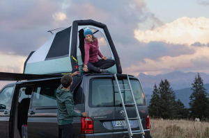 Très utilisée dans le tout-terrain, la tente de toit reste plutôt anecdotique en van, d’autant que la majorité des utilisateurs optent pour le toit relevable. Mais ceux qui ont fait le choix d’un toit fixe et qui veulent disposer d’une chambre supplémentaire sont parfois dans l’embarras. C’est en partant de ce constat que Decathlon a créé une tente de toit gonflable pour van, simple et rapide à installer !