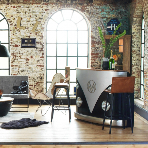 Réalisé en métal noir et gris ou blanc et rouge son design est original et ses phares apparents. Véritable star, il trônera comme la pièce maitresse de votre intérieur. Comptez environ 695 € + frais de port.