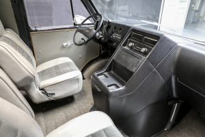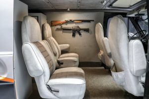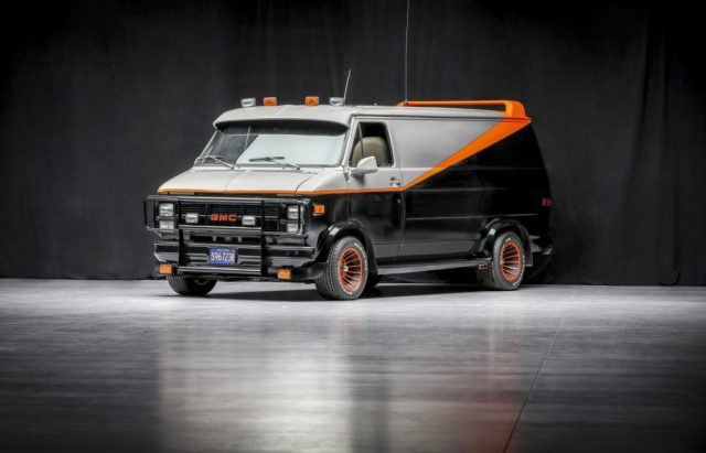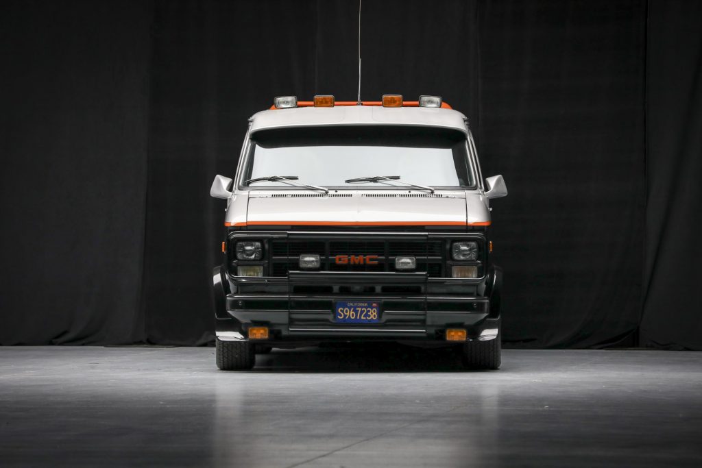 Il ne s’agit pas du véhicule original utilisé sur les tournages, mais d’un des six modèles utilisés par Universal pour faire la promotion de la série. Reproduit à l’identique, le van dispose de son impressionnant bouclier à l’avant, de ses quatre éclairages sur le toit, de ses grosses jantes orange, de son aileron de toit et de sa peinture noire, grise et orange. Sous le capot, on retrouve le V8 5,7 l de 200 chevaux, tandis que l’habitacle dispose de rangements muraux pour les armes, sans oublier la mitrailleuse 50 mm dans le coffre.